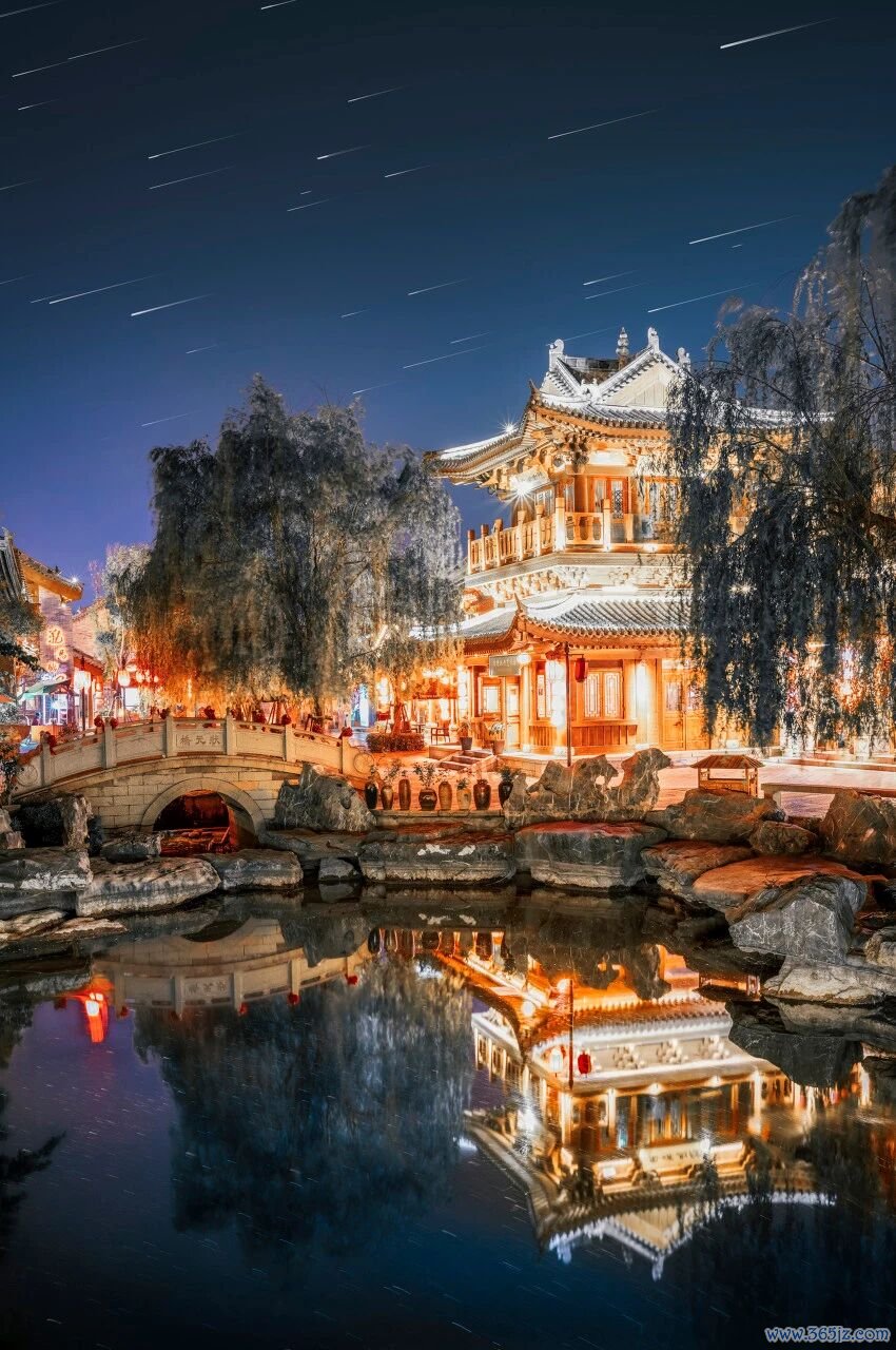 夜晚的古镇尤其迷人,灯火点亮河岸,倒映在波光中,仿佛一幅流动的水墨画。