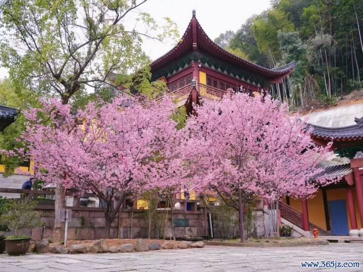 又是一年樱花季,在杭州的西北一隅,良渚大雄讲寺内的两株早樱,如世外仙子般静静盛放。