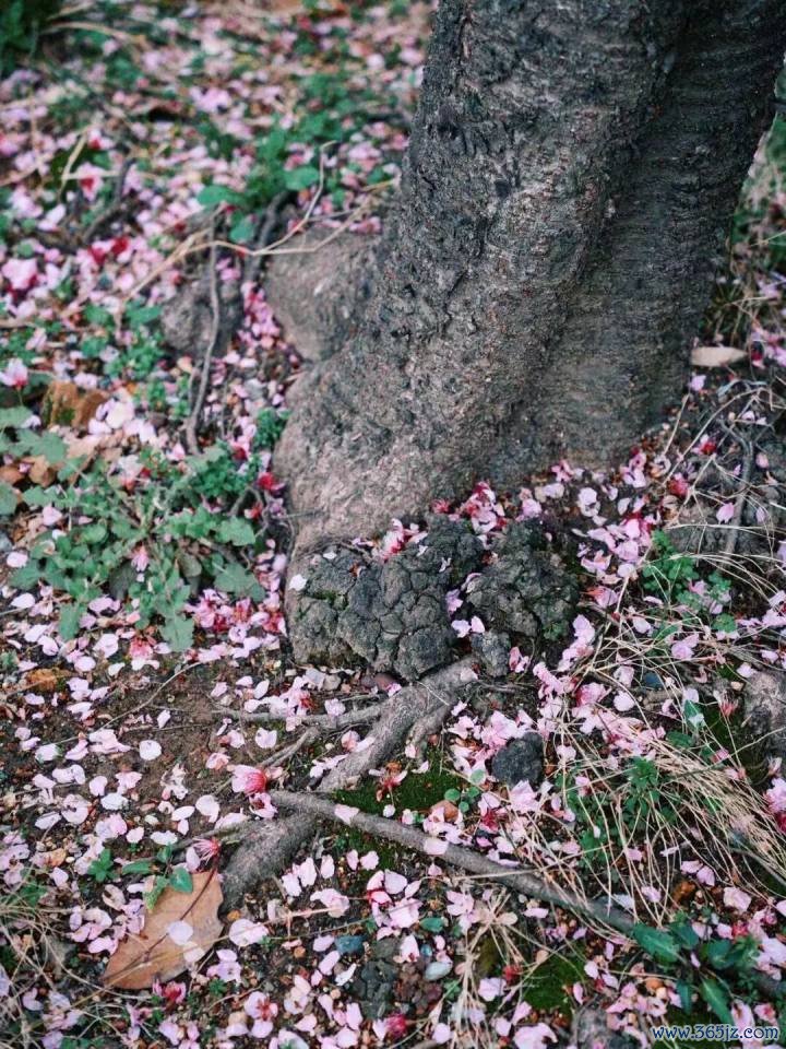 近日春雨频顾,树下已铺了一层柔软的粉色花瓣,更显诗意,却也提醒着赏花人:春光易逝,须趁早前来。